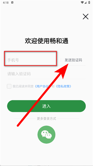 3、在登錄頁面輸入手機號碼,點擊發(fā)送驗證碼。