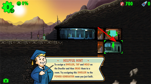 3、長(zhǎng)按居民并拖動(dòng)到對(duì)應(yīng)房間,完成崗位分配,合理分配居民到匹配其屬性的房間,可最大化資源產(chǎn)出,保障避難所運(yùn)轉(zhuǎn)。