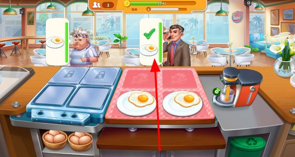 1、仔細(xì)查看顧客訂單,制作對(duì)應(yīng)的美食如煎蛋等,做好后及時(shí)送達(dá)顧客,獲取好評(píng)和豐厚收益。