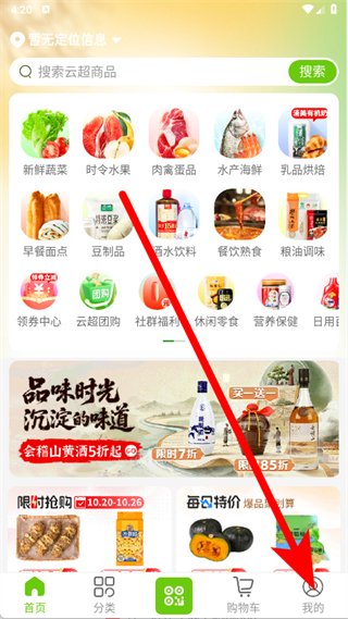 2、進入首頁,點擊底部導(dǎo)航欄最右側(cè)的我的。