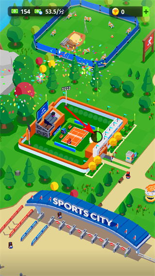 玩家可完全自主規(guī)劃建設(shè)體育城市,用賺到的錢(或借助鈔票不減反增機(jī)制)投資新建筑,為城市添加各類體育運(yùn)動(dòng)項(xiàng)目,打造超大型體育賽事城市。