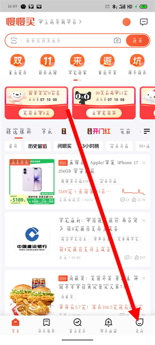 1、打開慢慢買,點擊底部導(dǎo)航欄最右側(cè)的我的。