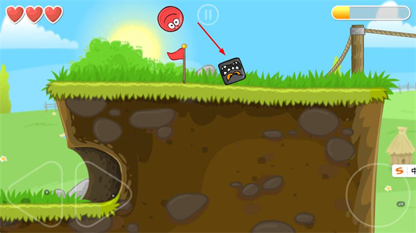 2、利用場景中的元素,推動其助力紅球到達目標旗幟位置,完成關(guān)卡挑戰(zhàn)。