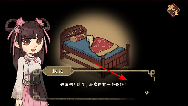 1、關(guān)注角色對(duì)話提示,如玫兒提及廚房有燒餅,可依此前往廚房獲取食材,推動(dòng)劇情與烹飪流程開展。
