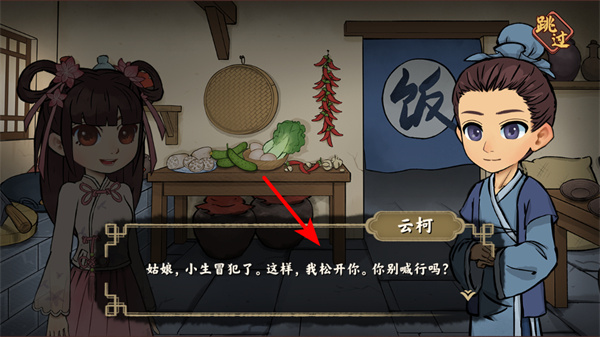 2、在劇情對(duì)話中,重視角色互動(dòng),如云柯的對(duì)話可推進(jìn)故事發(fā)展,完成互動(dòng)后即可開啟烹飪經(jīng)營環(huán)節(jié)。
