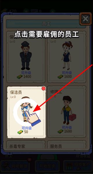 2、切換到員工管理界面,雇傭保潔員、技術員等員工,讓他們分別負責網吧清潔、設備維護等工作,全面保障網吧穩(wěn)定運營。