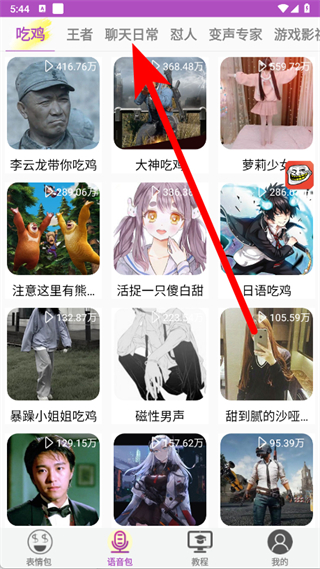 2、進(jìn)入語(yǔ)音包頁(yè)面后,選擇感興趣的分類(lèi),如聊天日常。