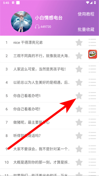 4、進(jìn)入小白情感電臺(tái),對(duì)喜歡的內(nèi)容進(jìn)行收藏或使用。