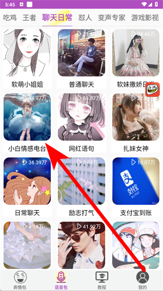 3、進(jìn)入感興趣的分類(lèi),點(diǎn)擊進(jìn)入具體的語(yǔ)音包內(nèi)容。