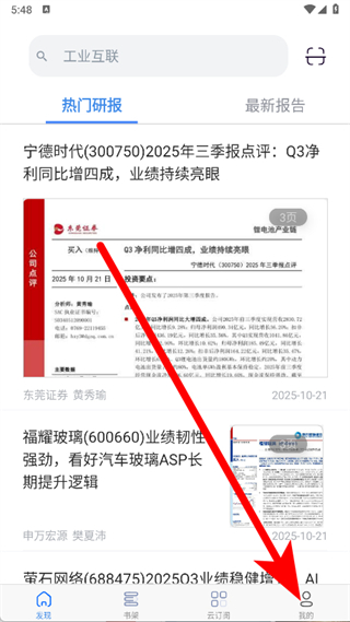 1、打開投研通,點擊頁面底部的我的,進入個人頁面。