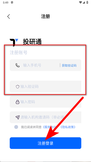 4、輸入手機號碼,點擊獲取驗證碼,輸入驗證碼并設(shè)置密碼,勾選后,點擊注冊登錄,完成注冊。