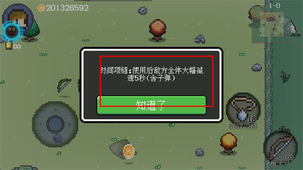 3、使用時間項鏈時,會彈出道具說明界面,點擊知道了即可成功拾取道具。