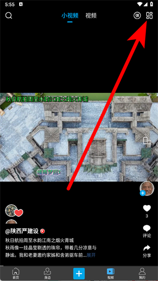 2、在視頻頁面,點(diǎn)擊右上角的網(wǎng)格狀圖標(biāo),切換到多格展示模式。