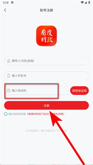 4、輸入收到的驗證碼,勾選后,點擊注冊按鈕,完成注冊。