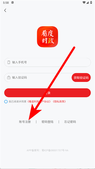2、進入登錄頁面后,點擊賬號注冊,進入賬號注冊頁面。
