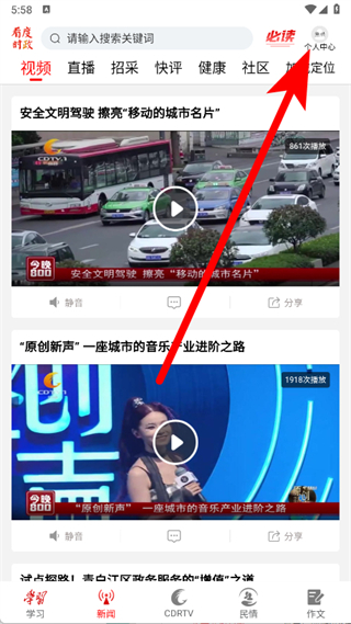 1、打開神鳥知訊,點擊頁面右上角的個人中心。