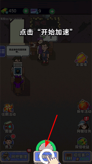 3、點(diǎn)擊開始加速按鈕,可快速推進(jìn)網(wǎng)吧經(jīng)營進(jìn)程,縮短收益獲取時間,助力網(wǎng)吧快速發(fā)展。