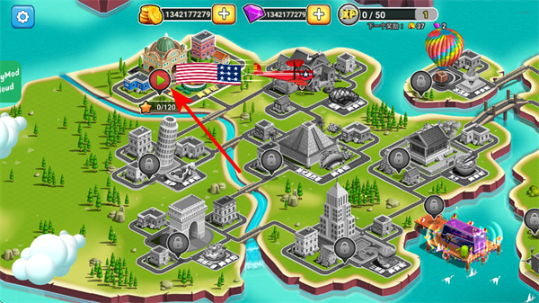 3、點(diǎn)擊帶有美國國旗標(biāo)識的區(qū)域,進(jìn)入對應(yīng)地區(qū)的餐車經(jīng)營關(guān)卡,拓展不同地域的美食經(jīng)營業(yè)務(wù)。