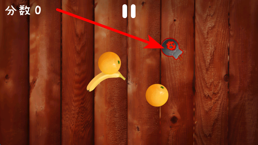 3、注意識(shí)別炸彈,若不小心切割到炸彈游戲會(huì)結(jié)束,需專(zhuān)注區(qū)分水果和炸彈,避免誤切。