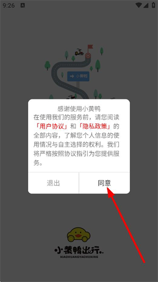 1、在用戶協(xié)議和隱私政策彈窗中,點擊同意,進入APP主頁面。