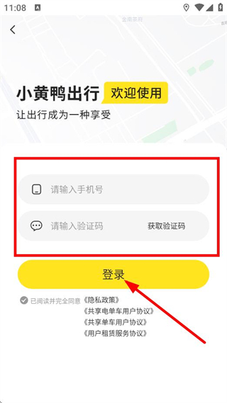 3、在登錄頁面,輸入手機號、驗證碼,點擊登錄,完成賬號登錄。