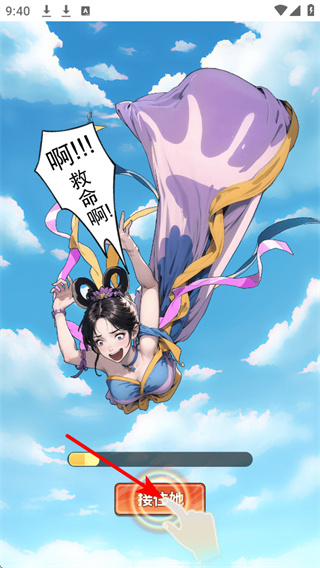 3、點擊接住她按鈕,完成救援操作,推動劇情發(fā)展,開啟后續(xù)的武俠冒險。