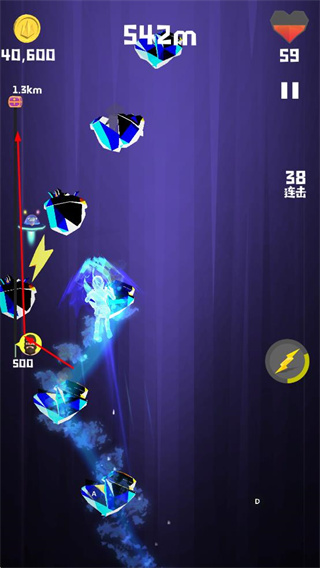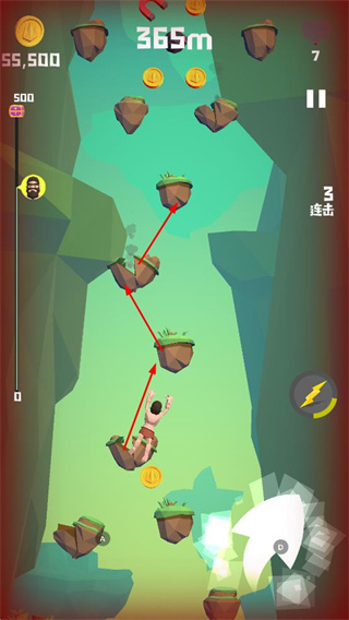 4、在不同場(chǎng)景攀爬時(shí),借助特殊元素保持連擊,朝著更高距離目標(biāo)努力。