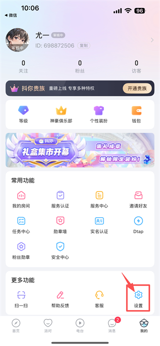 2、在個(gè)人中心,點(diǎn)擊設(shè)置選項(xiàng),進(jìn)入設(shè)置功能列表。