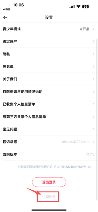 3、在設(shè)置頁面,點(diǎn)擊注銷賬號(hào)選項(xiàng),進(jìn)入申請(qǐng)注銷賬號(hào)界面。