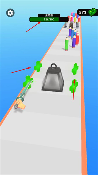 2、在闖關(guān)過(guò)程中,收集綠色道具,躲避障礙物,提升劍的生存與闖關(guān)能力。