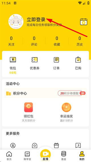 3、在個(gè)人中心頁(yè)面,點(diǎn)擊立即登錄,進(jìn)入手機(jī)快捷登錄頁(yè)面。