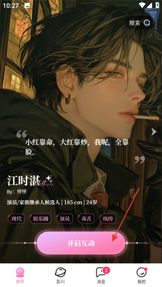 1、進(jìn)入怦怦,在首頁點擊開啟互動可進(jìn)入角色互動頁面。