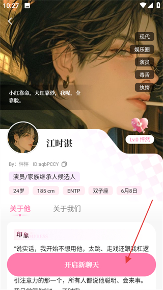 2、在角色頁面,點擊開啟新聊天可進(jìn)入聊天界面。