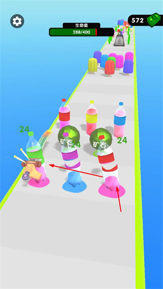 1、在闖關(guān)過(guò)程中,操控劍切割彩色物體,收集礦石,留意生命值,推進(jìn)闖關(guān)進(jìn)程。