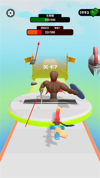 4、在關(guān)卡對(duì)戰(zhàn)時(shí),關(guān)注敵人進(jìn)度與自身生命值,操控劍發(fā)起攻擊,朝著通關(guān)目標(biāo)努力。