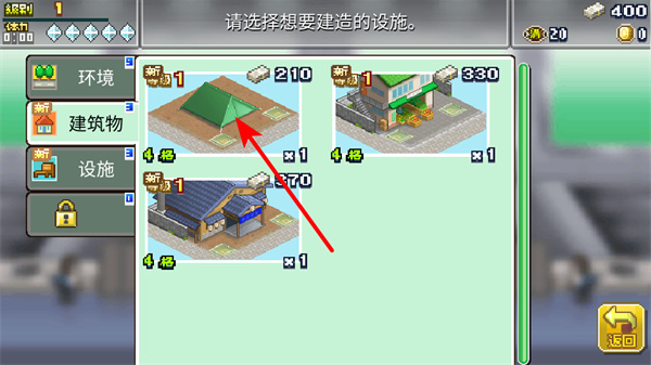 1、在建筑列表中選擇帳篷等設(shè)施,消耗資源進(jìn)行建造,完善英雄都市的基礎(chǔ)設(shè)施,提供支持。