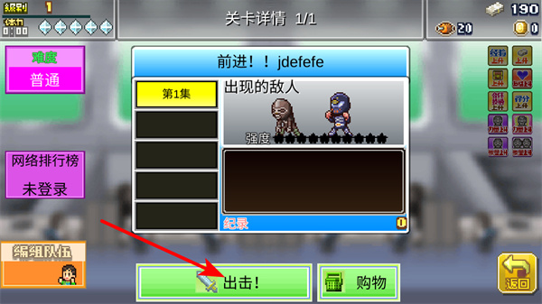 4、點(diǎn)擊出擊按鈕,進(jìn)入關(guān)卡戰(zhàn)斗,挑戰(zhàn)敵人,完成關(guān)卡目標(biāo)以獲取獎勵,推動游戲進(jìn)程。