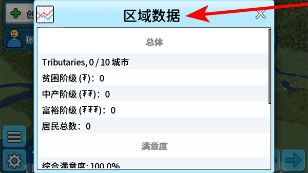 4、城市建成后,可查看區(qū)域數(shù)據(jù)界面,了解貧困階級(jí)、中產(chǎn)階級(jí)、富裕階級(jí)及居民總數(shù)等信息,助力城市管理。