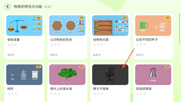 3、在闖關(guān)內(nèi)容頁面,點(diǎn)擊椅子不簡(jiǎn)單可進(jìn)入該知識(shí)點(diǎn)頁面。