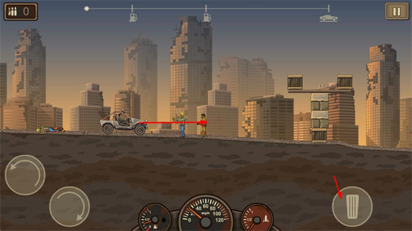 2、在駕駛過程中,遇到僵尸時(shí),點(diǎn)擊攻擊按鈕發(fā)起攻擊,保障車輛安全前行。