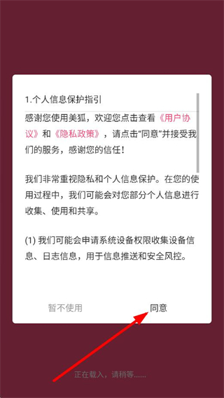 1、在個人信息保護指引彈窗中,點擊同意,進入APP主頁面。