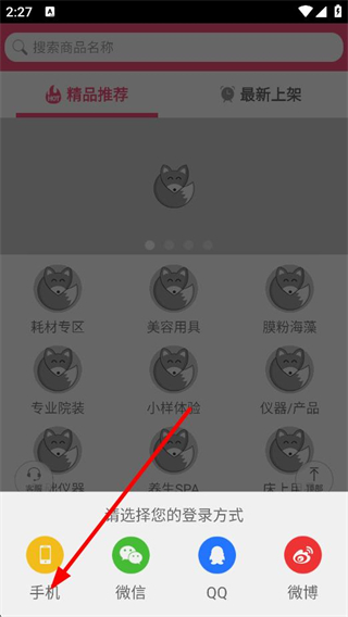 2、在APP主頁面,選擇登錄方式為手機號,進入注冊頁面。