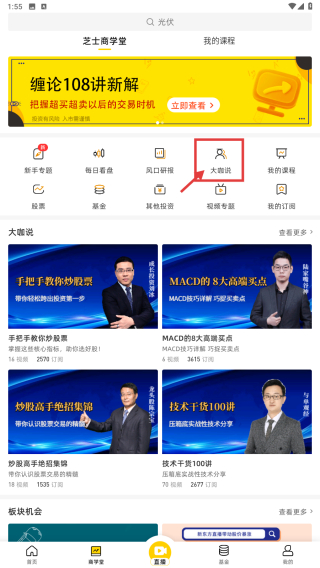 1、打開炒股學(xué)習(xí)應(yīng)用,點擊底部學(xué)堂選項,進入課程學(xué)習(xí)頁面。