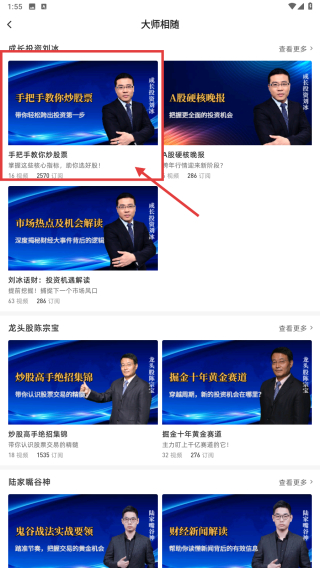 3、在課程列表里,找到手把手教你炒股票課程條目,點擊進入課程詳情頁。