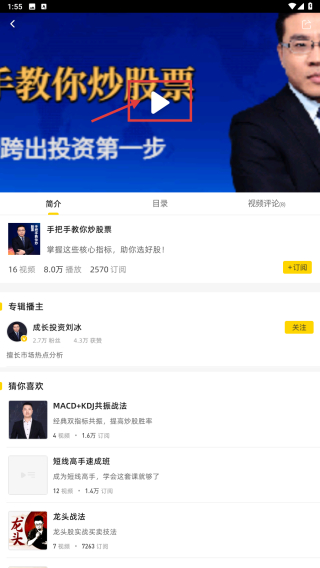 4、在課程詳情頁,點擊播放按鈕,開始學(xué)習(xí)炒股課程內(nèi)容。