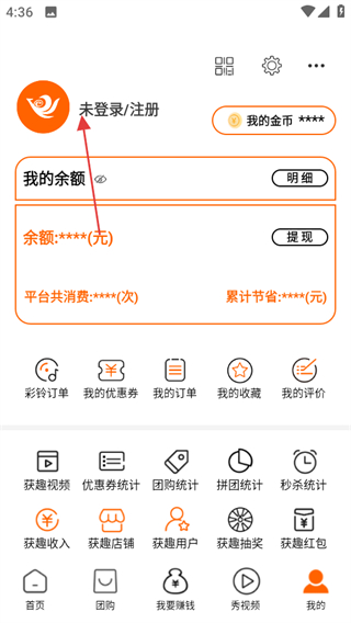 1、打開獲趣,點擊頁面右下角我的,可進入個人中心頁面。