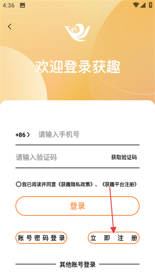 3、在登錄注冊頁面,點擊立即注冊可進入注冊頁面。