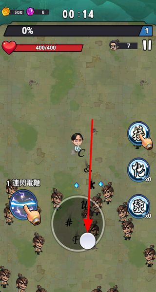 3、通過虛擬搖桿靈活控制角色移動,在密集敵人中躲避攻擊,同時尋找最佳有利位置發(fā)動強力攻擊。
