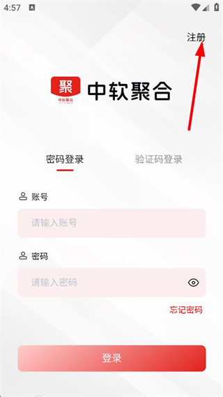 3、在登錄選擇頁面,點(diǎn)擊右上角的注冊,進(jìn)入注冊頁面。