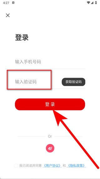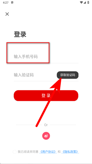 3、在登錄頁面,輸入手機(jī)號(hào)碼,點(diǎn)擊獲取驗(yàn)證碼。